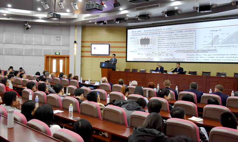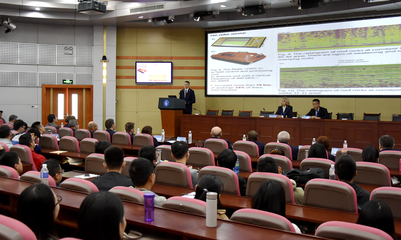 会上,双方学者携手带来14场学术报告,交流了在矿山开采、智能装备与环境保护领域的最新研究成果。中俄双方专家学者分别在矿业学院、机电学院、化工学院举办了学术沙龙活动,就“矿山开采与环境保护”、“智能装备”、“煤炭清洁高效利用”等议题进行了讨论。学术沙龙活动后,克列切多夫一行参观了矿山灾害预防控制国家重点实验室、低碳能源化工实验室、化工学院分析测试中心等。