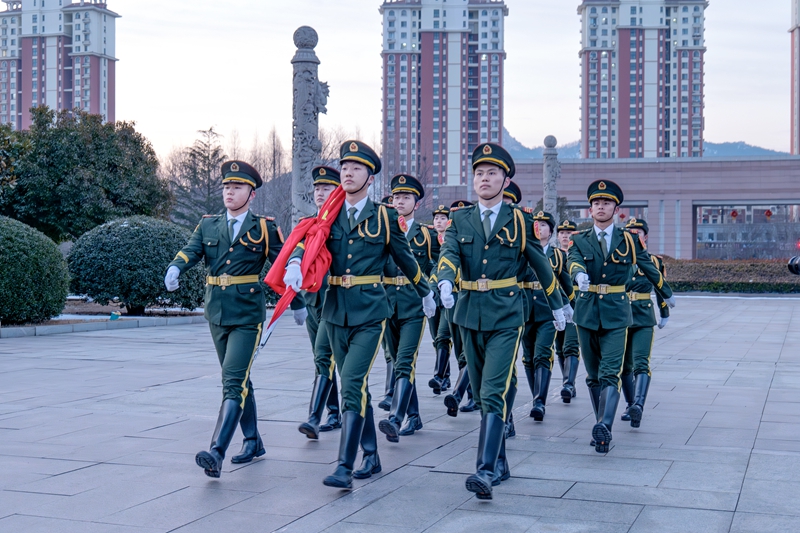 5点40分,天还未亮,BB贝博艾弗森官网国旗护卫队队员们已整理好着装,在指定地点就位,为本学期第一次升旗仪式做好准备。 “敬礼!”6点35分,升旗仪式正式开始,口令员的声音响彻泰山广场,国旗在庄严肃穆的国歌声中徐徐升起,全场师生庄严肃立,向国旗行注目礼。本次升旗仪式是新学期对国旗护卫队第一次集中检验,更是一堂生动的爱国主义教育课。国旗护卫队负责人、测绘学院遥感科学与技术2021级3班学生韩庆森说:“新学期,新征程。我们将在今后的学习和工作中积极进取,逐梦前行,以实际行动贡献国旗护卫队的青春力量!”
