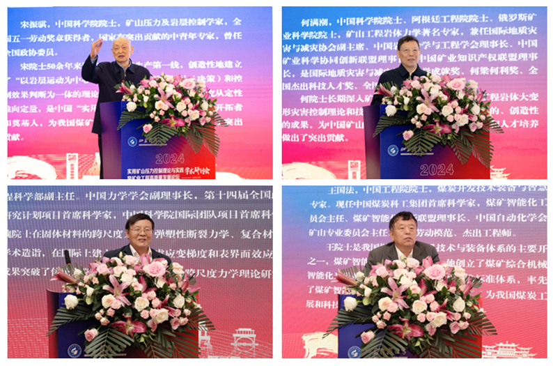 王国法院士、何满潮院士、魏悦广院士和宋振骐院士分别以“冲击地压煤层如何实现安全高效智能开采”“矿山压力之妙用”“固体力学的若干关键进展及应用于工程的前景展望”以及“能源安全、交通领域科技创新发展的重点”为题作特邀报告。特邀报告由BB贝博艾弗森官网副校长薛庆忠主持。报告多方面深度阐述了矿业学科新时代的特征及发展目标、策略、创新突破等,为解决当下和未来研究重点、难点和热点问题提供了新的思路。