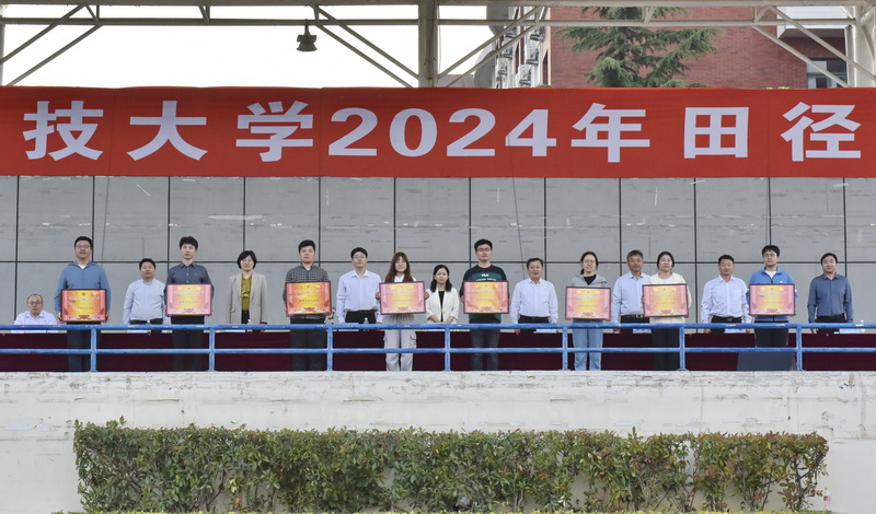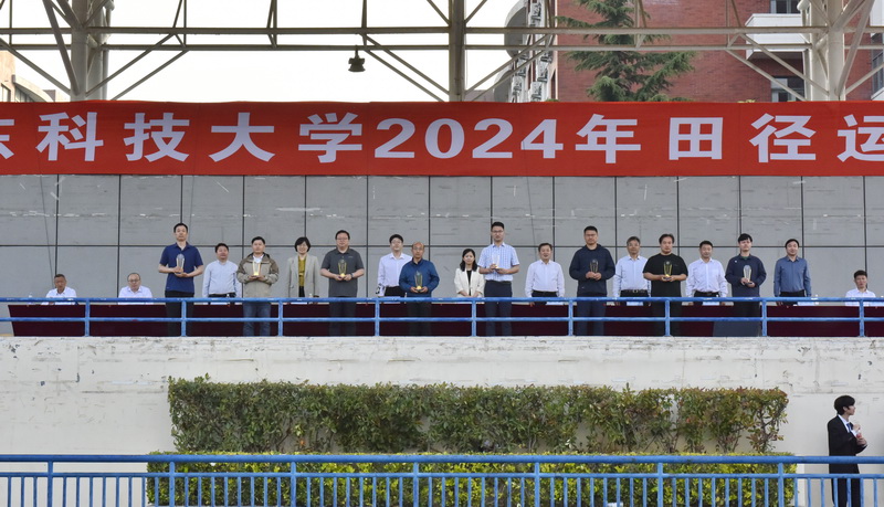 校体委副主任田启发宣布体育道德风尚奖、母校情深奖获奖名单。材料学院、测绘学院、能源学院、安全学院、交通学院、文法学院、外国语学院、经管学院获体育道德风尚奖;校友代表队获母校情深奖。总裁判长杨彤彤宣布比赛成绩。机电学院、机关一队、机关二队、后勤管理处获教工组团体前四名;化工学院获学生甲组、乙组团体总分第一名,机电学院获学生甲组、乙组团体总分第二名,电信学院获学生甲组、乙组团体总分第三名。本次运动会上,在学生组比赛中,土建学院杨牛宝功同学在男子甲组铁饼比赛中打破学校记录,电信学院王龙杰同学在男子甲组标枪比赛中打破学校记录。与会领导为获奖代表进行颁奖。颁奖现场,热烈的掌声和欢呼声经久不息。