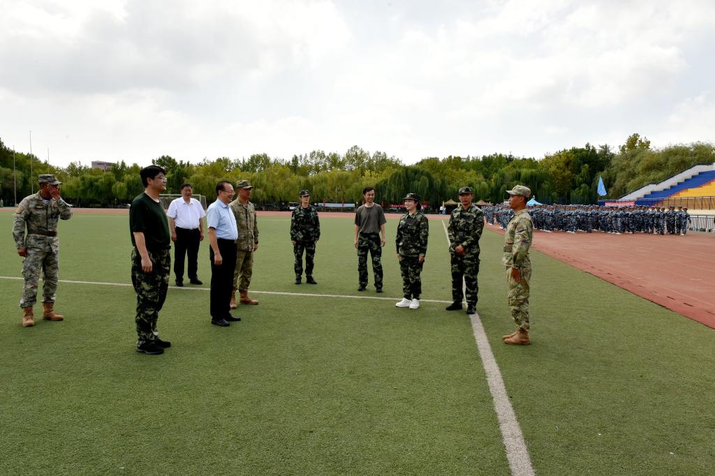 训练场上,同学们身姿挺拔、目光坚定、口号嘹亮,以良好的精神面貌全身心投入训练。罗公利与军训教官、参训学生亲切交流,详细了解了军训的总体情况。
