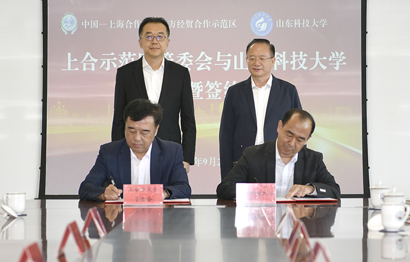 青岛市委常委、上合示范区党工委书记张新竹主持座谈会。BB贝博艾弗森官网党委书记罗公利、校长曾庆田,党委副书记郭益灵、副校长诸葛福民出席协议签署仪式并座谈。