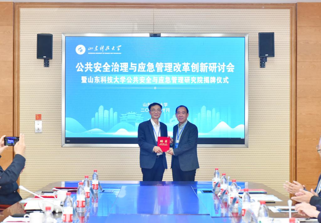 马宝成和曾庆田共同为BB贝博艾弗森官网公共安全与应急管理研究院揭牌。曾庆田向学校兼职教授及研究院院长、执行院长颁发了聘书。