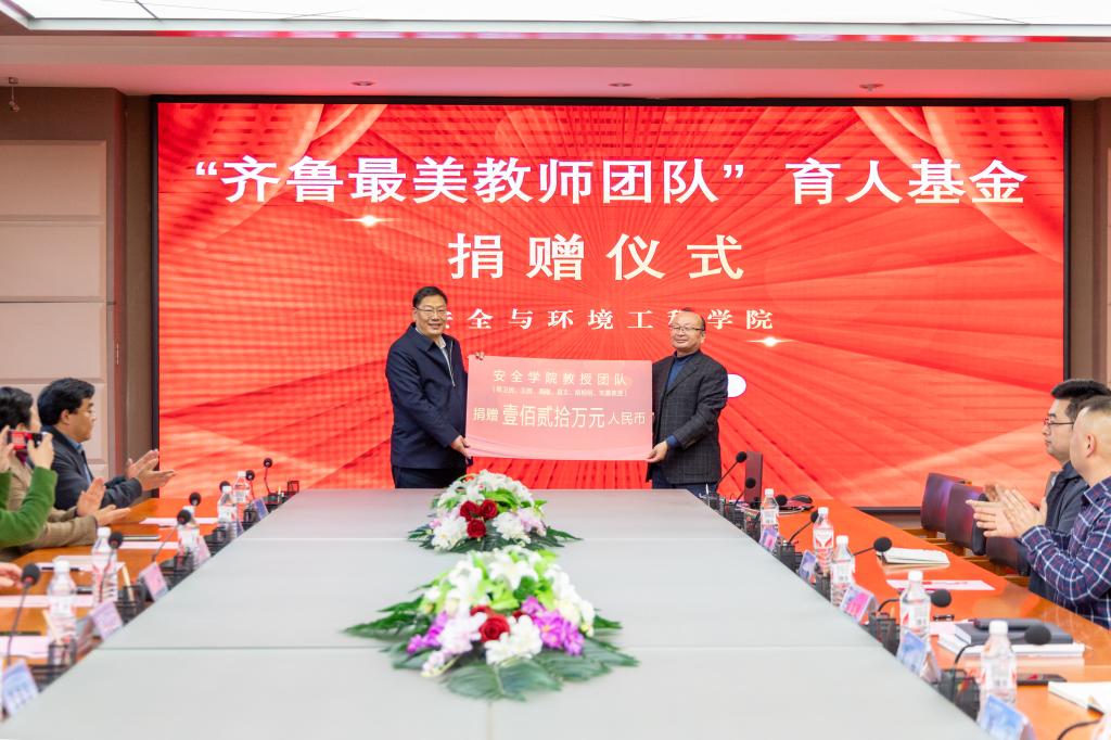 12月3日,学校举行“齐鲁最美教师团队”育人基金捐赠仪式。安全学院程卫民、王刚、周刚、聂文、胡相明、刘震6位教授出资120万元设立“齐鲁最美教师团队”育人基金,用于奖助学生学习、科技创新活动及学院学生工作事业发展。副校长诸葛福民代表学校接受捐赠并颁发捐赠证书。