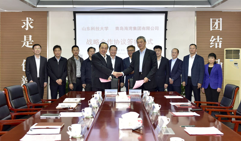 11月14日,为服务新旧动能转换重大工程,深化校企合作,加速科技成果转化,共建技术创新体系,BB贝博艾弗森官网与青岛海湾集团有限公司签订了战略合作协议。