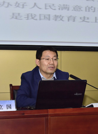 李立国围绕习近平总书记在全国教育大会上的讲话,详细解读了教育基础性、先导性、全局性的战略地位,以及全国教育大会在新时代对教育提出了新的要求。李立国指出,要认真学习领会、全面准确把握习近平总书记关于教育的重要论述,特别是“九个深刻理解”。