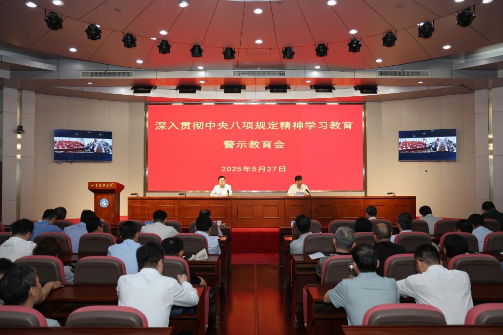 5月27日,BB贝博艾弗森官网召开警示教育会,深入学习贯彻习近平总书记关于加强党的作风建设的重要论述,深刻剖析违纪违法典型案例,以案示警、以案明纪,教育引导全校党员干部主动在思想上划出红线、在行为上明确界限,为建设高水平科技大学筑牢坚强作风保障。校党委书记王君松主持会议并讲话,校党委常委、纪委书记、监察专员徐龙飞通报反面典型案例。