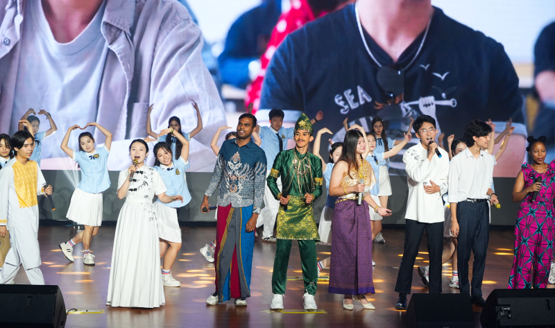 活动现场,BB贝博艾弗森官网学生带来合唱《夏天的梦是什么颜色》《世界赠予我的》和中外学生歌舞表演《下一场山海》。