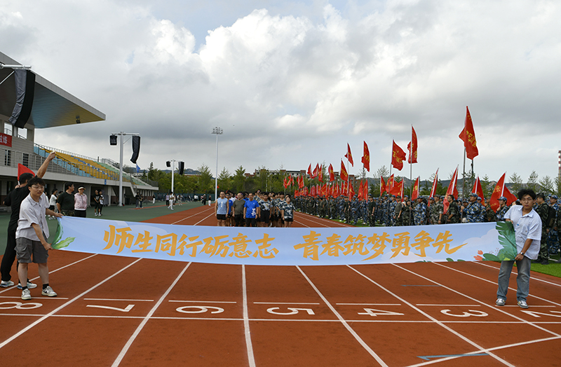 9月13日下午3时,科创园区田径运动场上,5500余名2025级本科新生分为19个营、54个连,在迎风招展的红旗下整装列队,静静等待军训野外行军拉练科目的“开拔”命令。