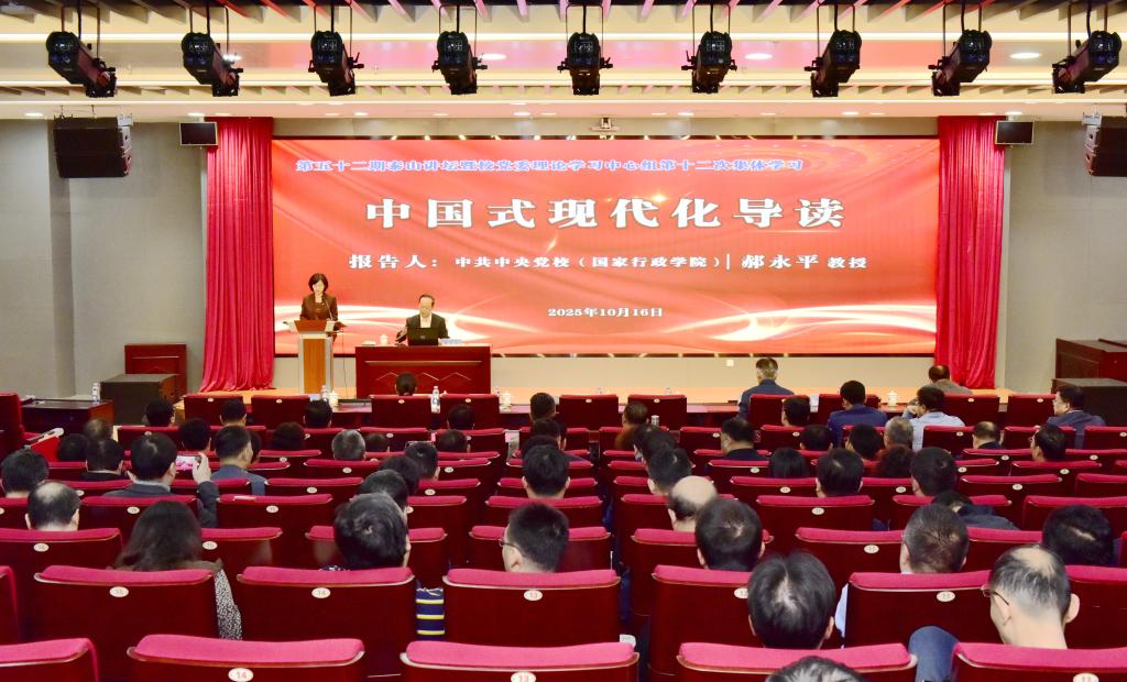 为深入学习贯彻习近平总书记关于中国式现代化重要论述,全面落实学校第四次党代会精神,10月16日,学校举办第52期“泰山讲坛”暨校党委理论学习中心组第十二次集体学习,特邀中共中央党校(国家行政学院)原副秘书长、博士生导师郝永平教授作题为“中国式现代化导读”专题辅导讲座。校党委领导班子成员王君松、郭益灵、徐龙飞、李克周、王震出席报告会。