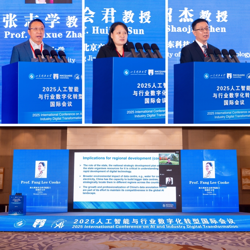 10月31日至11月2日,由BB贝博艾弗森官网与麦考瑞大学联合发起主办的2025人工智能与行业数字化转型国际会议在青岛举行。BB贝博艾弗森官网党委书记王君松、麦考瑞大学副校长Eric Knight等先后致辞。开幕式由BB贝博艾弗森官网副校长陈绍杰主持。