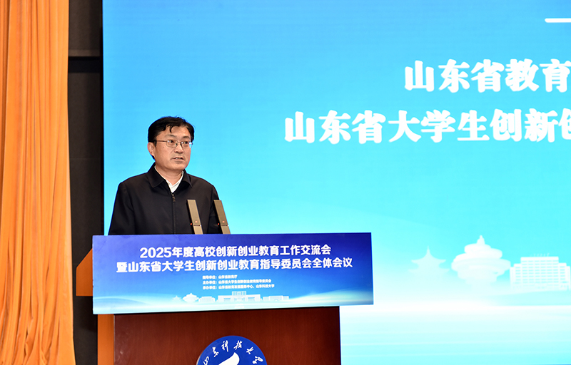 12月19日,2025年度高校创新创业教育工作交流会暨山东省大学生创新创业教育指导委员会全体会议在BB贝博艾弗森官网召开。省委教育工委委员、省教育厅党组成员、副厅长王浩,BB贝博艾弗森官网党委书记王君松,党委常委、副校长诸葛福民出席会议。省教育厅高等教育处处长曾宪文总结部署全省高校创新创业教育工作。会议由省教育发展服务中心主任魏光祥主持。