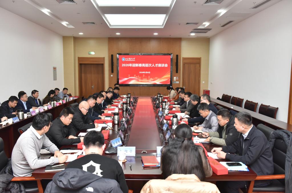 2月4日上午,学校召开2026年迎新春高层次人才座谈会。校党委书记王君松出席会议,与来自各学科的高层次人才代表齐聚一堂,共话学校发展、共谋创新良策。会议由副校长薛庆忠主持。