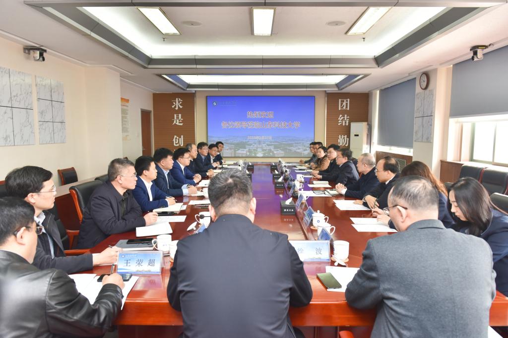 王君松对刘文强一行的到来表示欢迎,从历史沿革、学科建设、师资队伍、人才培养等方面介绍了学校基本情况和近期发展成就。他表示,希望校企双方在学术著作出版、人才培养就业、科技成果转化、文化传播创新等方面进一步加强交流,实现优势互补、互利共赢,共同为教育强省建设贡献力量。