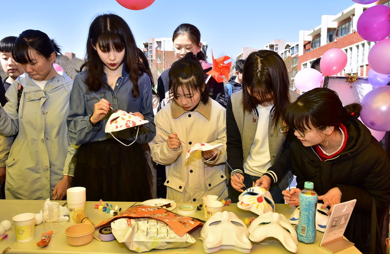 开幕式后,近千名中外大学生参加了艺术节异域风情游园活动。日本、德国、新加坡、法国、荷兰等国家的特色风俗文化以多种趣味形式大放异彩。现场,中外大学生身着各具特色的异域服装,设置了具有各国特色的丰富知识和趣味游戏,还精心准备了各国的美食,让“游客”品尝美食,观赏摆件,感受具有异域风情的舞蹈,通过参与互动,师生在美食和游戏中感受文化的融通。