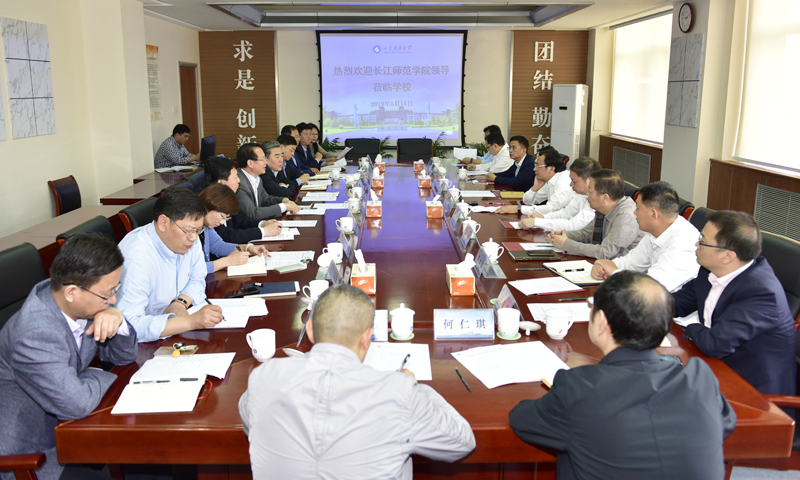 5月14日,长江师范学院党委书记彭寿清、校长黄大勇带队来校交流合作,BB贝博艾弗森官网党委书记罗公利、校长姚庆国会见客人并举行座谈。