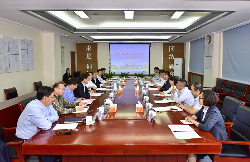 5月20日,潍坊医学院党委书记李欣章、校长管英俊、副校长刘军带队来贝博官网进行工作交流。校党委书记罗公利、校长姚庆国、副校长孙鹤汀会见客人,并进行了座谈交流。