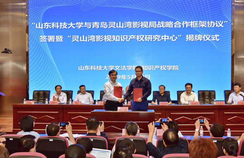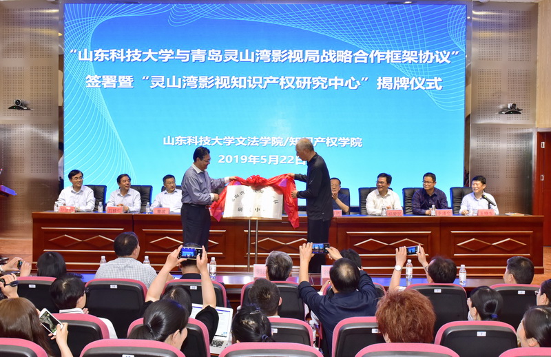 来校期间,田力普和尹华共同为“灵山湾影视知识产权研究中心”和“BB贝博艾弗森官网影视知识产权研究与教学实践基地”揭牌,青岛灵山湾影视局副局长李泽全和文法学院/知识产权学院院长孙法柏签署《BB贝博艾弗森官网与青岛灵山湾影视局战略合作框架协议》。