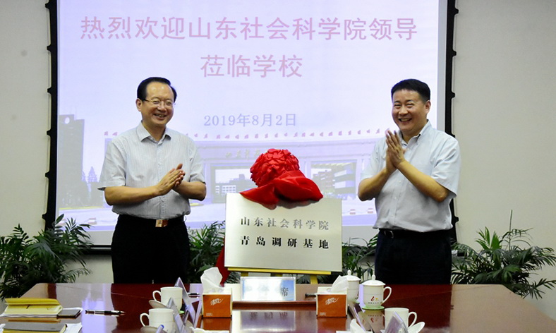 尹华、袁红英代表双方签署共建协议。签署协议后,唐洲雁、罗公利共同为“山东社会科学院青岛调研基地”和“山东社会科学院•BB贝博艾弗森官网马克思主义理论人才联合培养基地”揭牌。