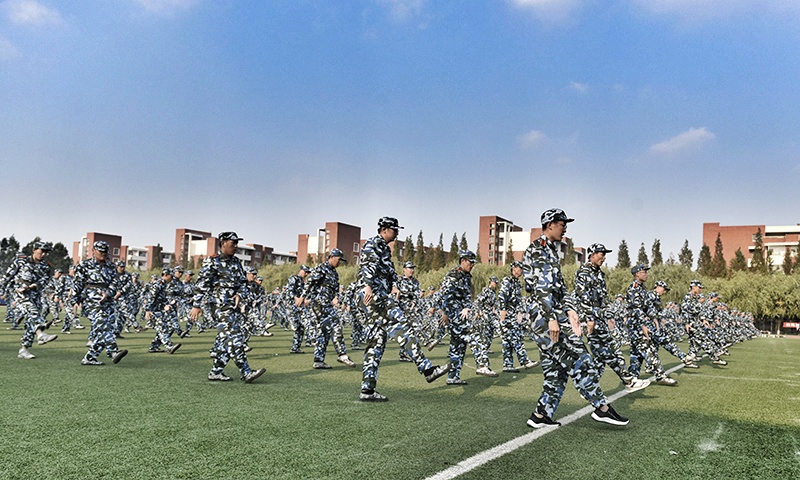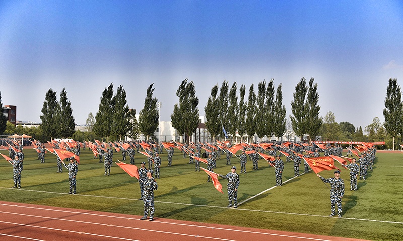 虽然训练才仅仅几天的时间,练队列的学生们已经做到了列队整齐、军姿挺拔、口号嘹亮;练军体拳的学生,一招一式,孔武有力,有板有眼;练旗操的,已经能把手中的旗子挥舞得呼呼生风,起落有致……在教官的严格训练下,预定的各项训练科目已初见成效。