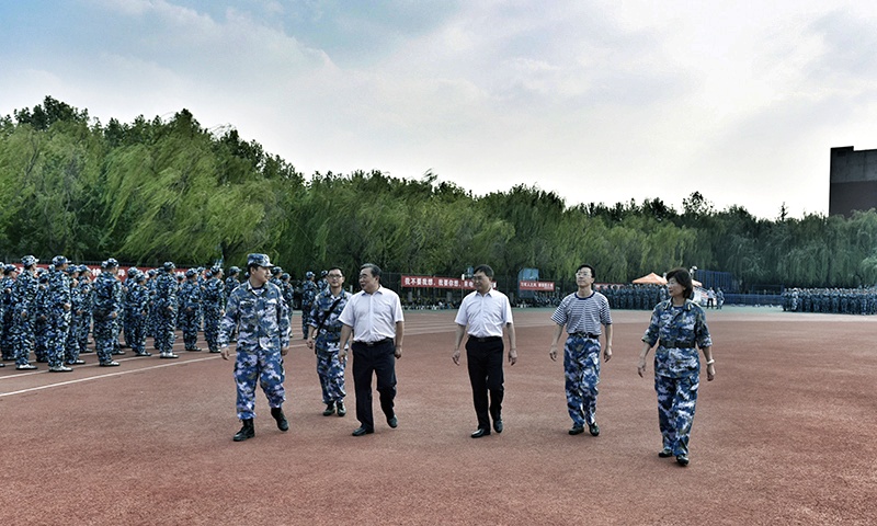 9月7日下午,BB贝博艾弗森官网校长姚庆国、副校长高建广来到风雨操场、高地运动场等军训现场,看望正在军训的教官和2019级军训学生。学生处有关负责人和军训团领导陪同看望。