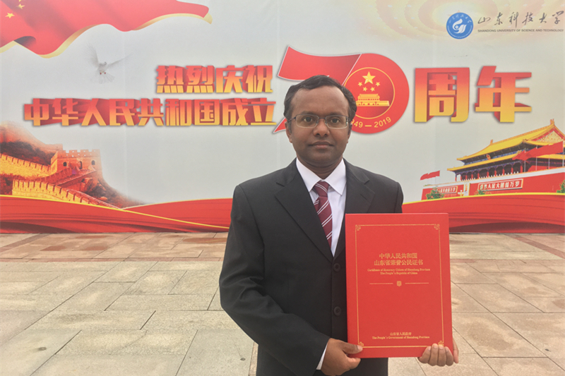 9月29日,“山东省荣誉公民”授荣仪式在济南举行,省委书记刘家义,省委副书记、省长龚正出席仪式。BB贝博艾弗森官网电信学院印度籍专家刘山教授受邀参加授荣仪式。仪式上,刘家义为刘山颁发荣誉证书。