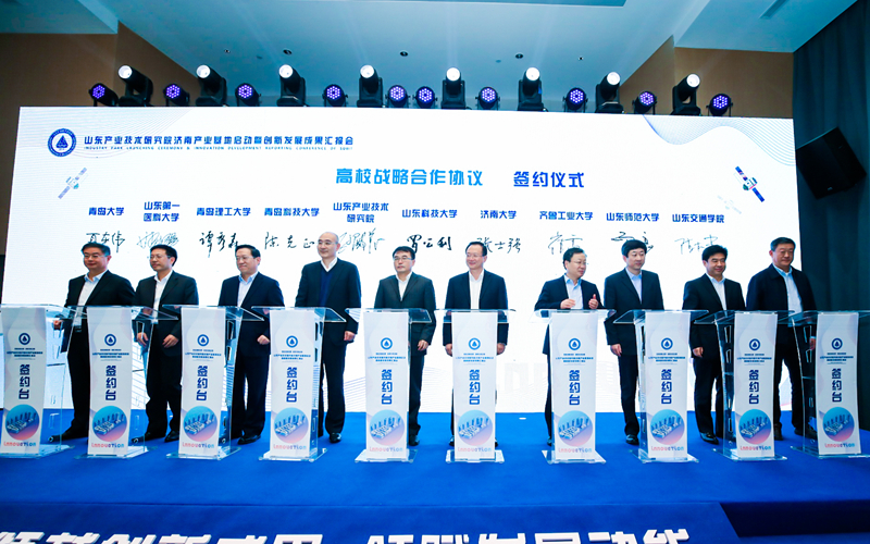 会上,山东产业技术研究院与BB贝博艾弗森官网等9所高校发起成立了山东产业技术研究院大学产业技术创新联盟并签署了战略合作协议,发布了山东产业技术研究院未来产业培育基金、新材料与高端装备产业基金、信息技术产业发展基金、绿色产业发展基金,同时为“山东矿山生态与安全研究所”等23个创新平台揭牌。