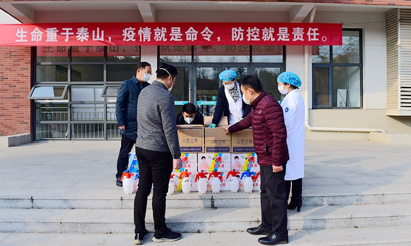 后勤产业党委、后勤管理处及校医院主要负责人与乐悦家连锁超市经理对捐赠物资进行了交接,感谢企业对学校的支持,赞赏其在疫情防控大局中的教育情怀、社会担当,表示一定利用好这批物资,为疫情防控发挥作用。