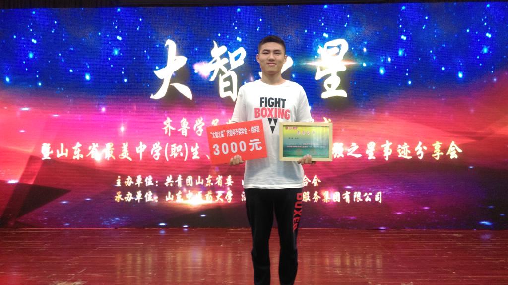 在共青团山东省委、山东省学生联合会揭晓的“大智之星”齐鲁学子奖学金获奖名单上,贝博官网机电学院机械电子工程专业2015级硕士研究生杨扬从全省1682名大中学生脱颖而出,获“齐鲁学子榜样奖学金”,被授予“山东省大学生自强之星标兵”荣誉称号,大学组仅评选10名“山东省大学生自强之星标兵”,颁发“大智之星”齐鲁学子榜样奖学金。