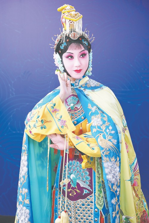 登台的日子终于来临,聚光灯亮、鼓琴齐鸣,庄英赞化身“虞姬”,从台口翩然登场。“看大王在帐中和衣睡稳,我这里出帐外且散愁情……”唱腔婉转、如泣如诉,声音清脆悦耳,又带着丝丝哀愁,演绎了虞姬对霸王的深情、对未来的迷茫,打动了所有在场观众,赢得了阵阵掌声……