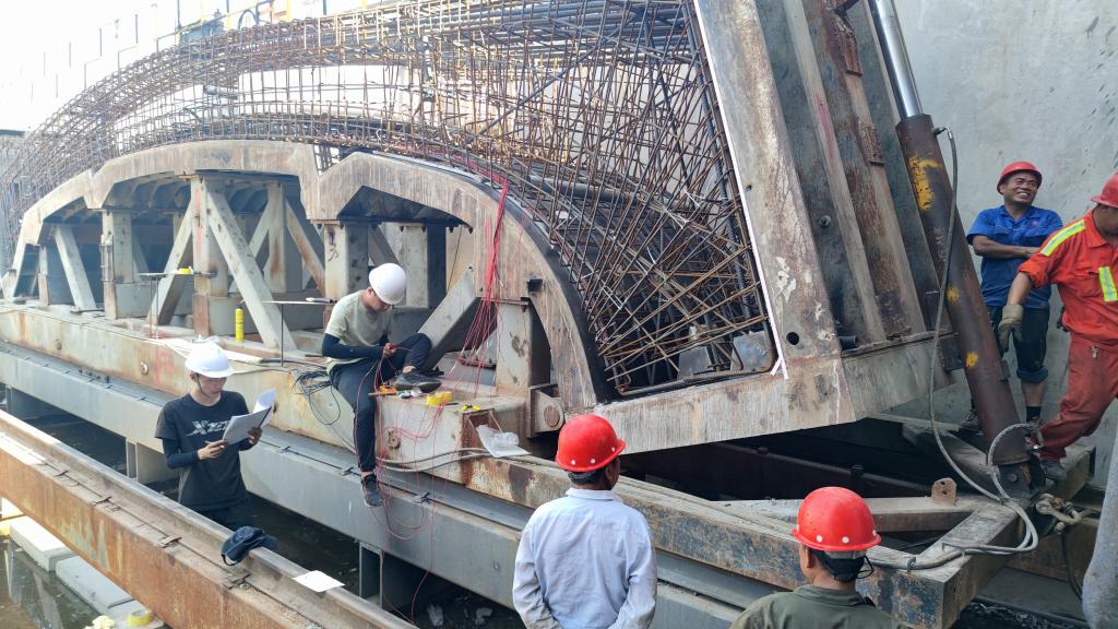 “工程监测”研究生工程师小队深度服务大型基础设施安全保障,攻关基建安全监测难题。在青岛地铁6号线、9号线多座装配式车站健康监测项目中,通过长期原位监测,精准掌握大型装配式地下结构受力及变形规律,为车站结构安全施工及运维提供关键数据支撑。在G308文石线湍急河道支架现浇连续梁桥施工中,利用数值模拟结合实时图像识别技术,对支架及结构安全进行监测与预警。