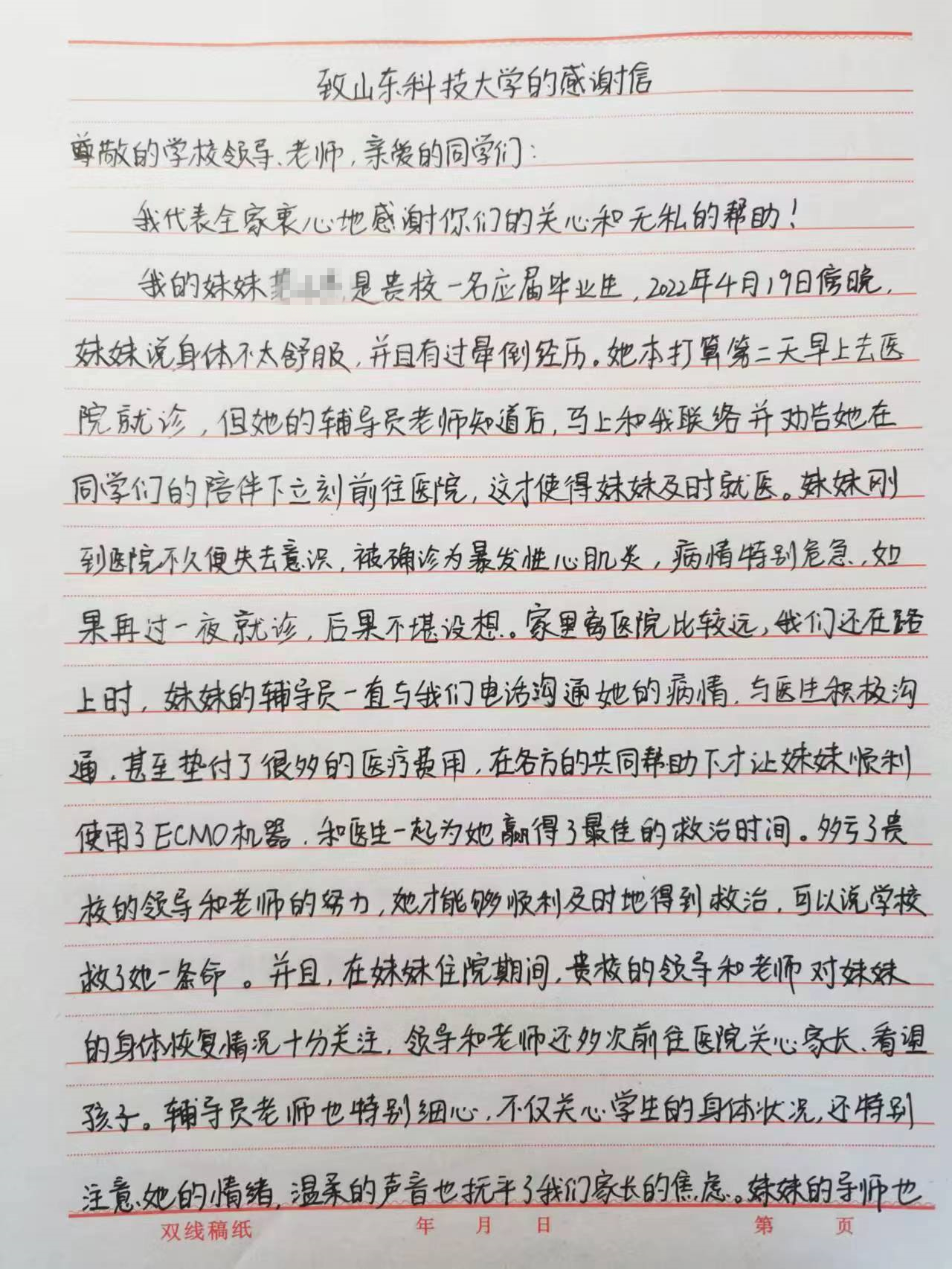 “我代表全家衷心感谢你们的关心和无私的帮助!”近日,贝博官网经管学院收到了一封情感真挚的感谢信。这封信由学院研究生范慧(化名)的家长亲手写就,只为感谢学院辅导员江谭“生死时速”救助学生的事迹。