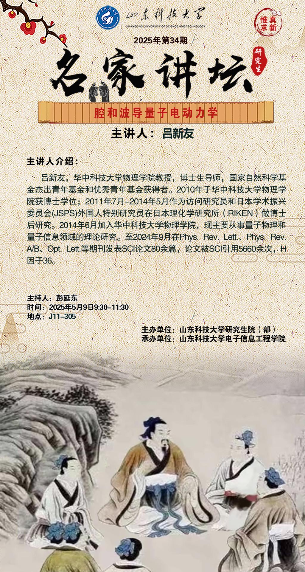 “名家讲坛”2025年第34期:腔和波导量子电动力学(总1039期)