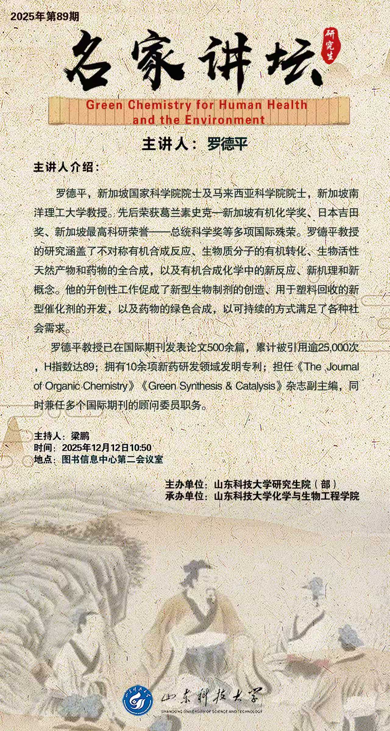 “名家讲坛”2025年第89期:Green Chemistry for Human Health and the Environment(总1094期)