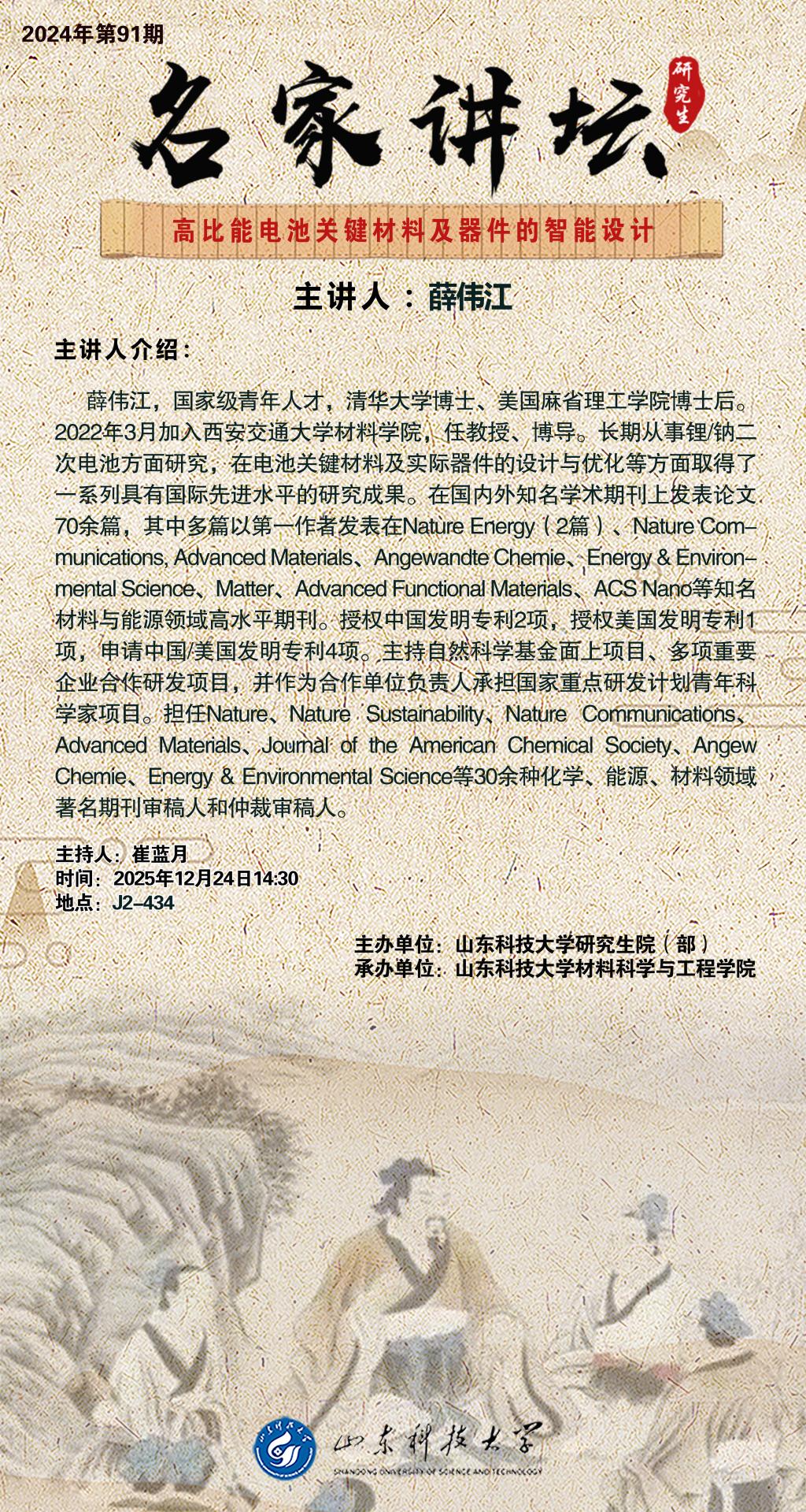 “名家讲坛”2025年第91期:高比能电池关键材料及器件的智能设计(总1096期)