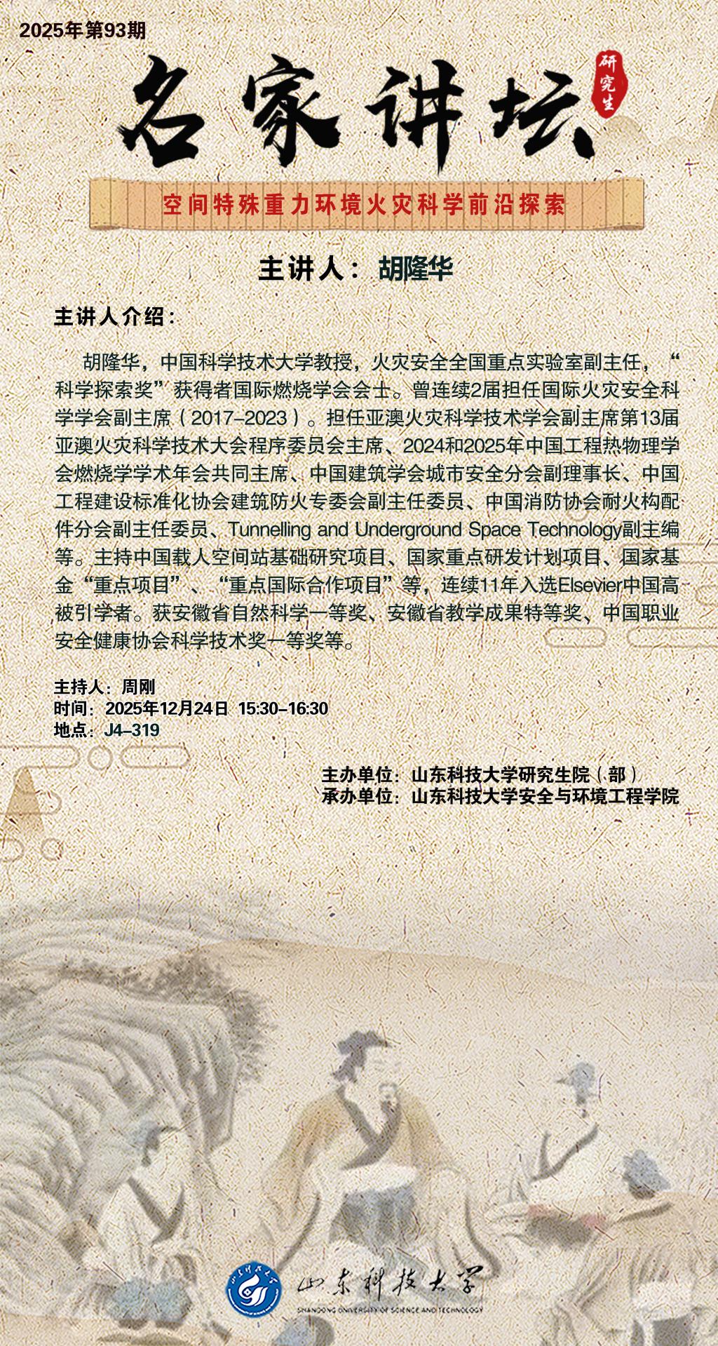 “名家讲坛”2025年第93期:空间特殊重力环境火灾科学前沿探索(总1098期)