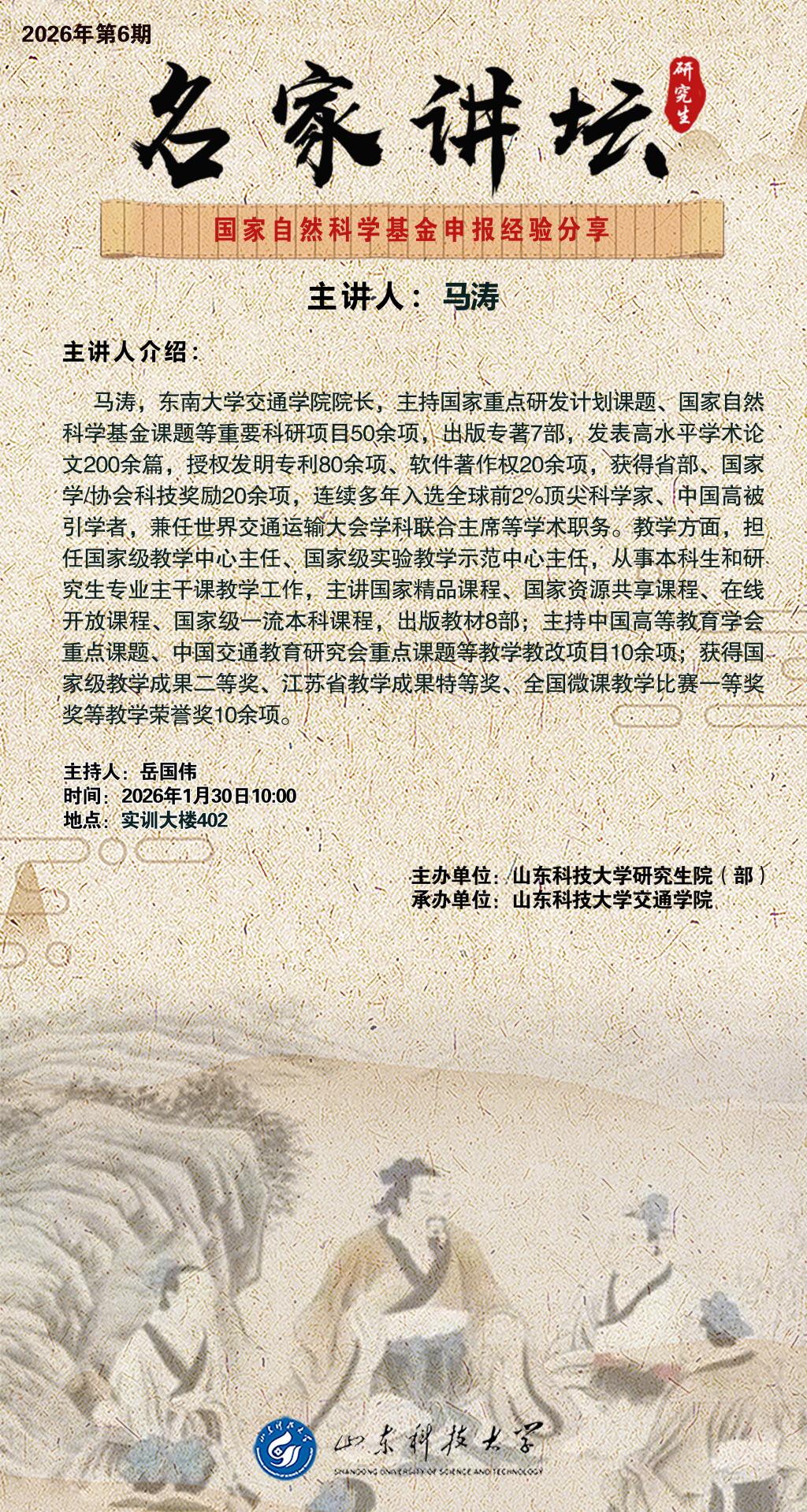 “名家讲坛”2026年第6期:国家自然科学基金申报经验分享(总1108期)