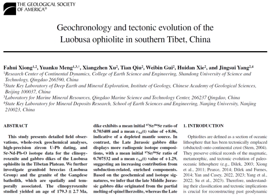 成果简介:藏南冈底斯及雅鲁藏布造山带(蛇绿岩)作为青藏高原的重要组成部分,记录了新特提斯洋俯冲消亡及印度-亚洲大陆碰撞的完整地质信息,是揭示高原形成机制的关键区域。本系列研究揭示了冈底斯造山带中始新世花岗岩主要源自幔源年轻下地壳,混入约10%的古老基底物质,由基性下地壳非平衡部分熔融形成。渐新世花岗岩则源于增厚地壳在流体助熔下的部分熔融,岩浆源区含约25%印度大陆物质,上升过程中经历约15%程度的分离结晶。研究揭示了两期花岗岩在源区性质与演化路径上的显著差异,建立了定量约束碰撞同期与碰撞后岩浆成因过程的研究框架,对理解全球大陆碰撞带花岗质岩浆成因及地壳演化具有重要意义。此外,研究成果系统厘定罗布莎辉石岩形成于晚侏罗世早期,明显早于雅鲁藏布缝合带中、西段早白垩世的蛇绿岩;识别出两类辉长质岩脉:蛇绿岩体内的辉长岩脉具N-MORB地球化学特征,形成于洋中脊环境;而侵入晚三叠世浊积岩的辉长岩脉则具弧型特征和较富集的同位素组成,表明其形成于SSZ环境,且有俯冲相关的熔/流体参与,最终提出罗布莎蛇绿岩经历了两阶段演化:初始阶段为典型的N-MORB环境,中侏罗世晚期至晚侏罗世逐步转为弧前SSZ环境。