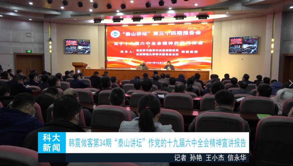 【科大新闻】韩震做客第34期“泰山讲坛”作党的十九届六中全会精神宣讲报告