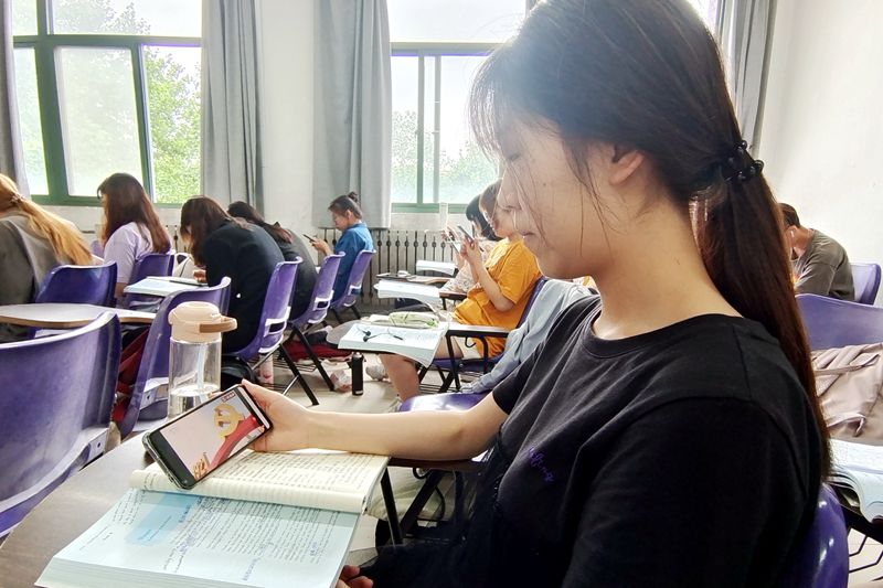 学生通过手机等多种设备观看直播