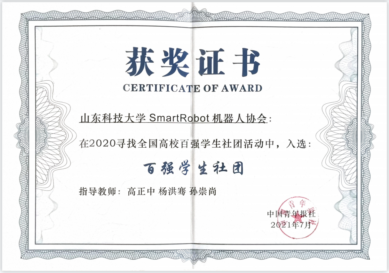 近日,由全国学联秘书处指导、中国青年报社主办的“2020寻找全国高校百强学生社团”活动评选结果揭晓,BB贝博艾弗森官网SmartRobot机器人协会经过学校推荐、社团展示、网络投票、技术筛查、专家评审等环节,从来自全国各地1014所高校的3871个学生社团中脱颖而出,入选“2020年全国高校百强学生社团”。