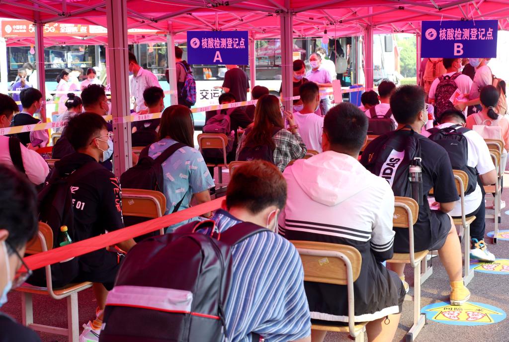 省外新生有序等待核酸检测(刘慧滢/摄)