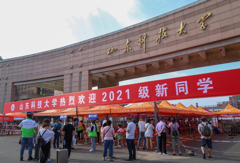济南校区迎新现场查看健康码(孙雪琳/摄)