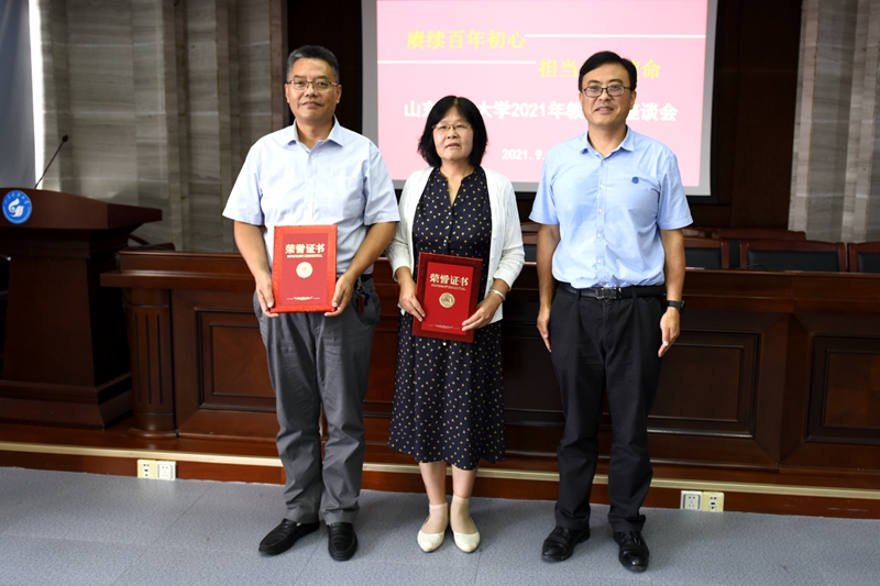座谈会上,罗公利、张建分别为2021年学校最美教师、教书育人楷模教师代表,2021年校优秀教师、优秀教育工作者代表以及从事教育事业三十年的教师代表颁发荣誉证书。