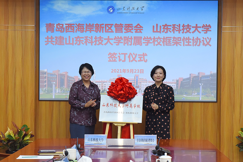 仪式上,李玉霞与张磊娜共同为“BB贝博艾弗森官网附属学校”揭牌,学校合作发展处处长、服务青岛办公室主任王晓东与区教体局局长于瑞泳代表双方签订协议。
