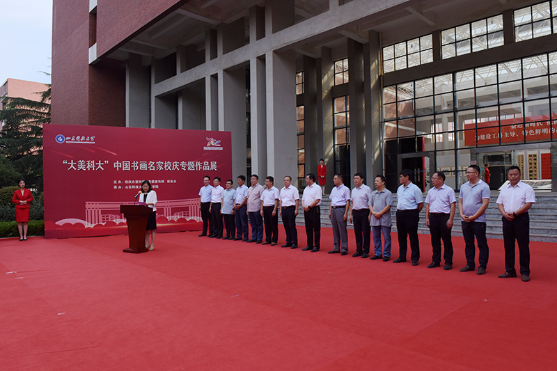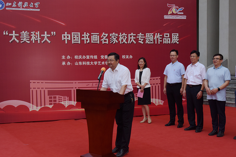 校党委副书记尹华出席开展仪式,并宣布书画展开展。校党委常委、宣传部部长李克周致辞,青岛西海岸新区教育文联主席武善领及西海岸新区文联、新区教育文联代表出席开展仪式。仪式由校文联常务副主席、艺术学院院长杨梅主持。