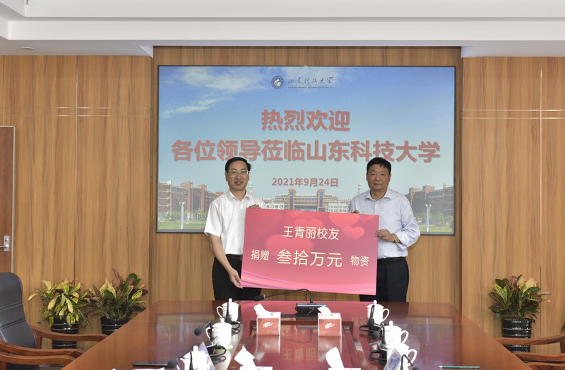 9月24日,晋南校友会会长王青丽,香港校友会秘书长、龙闯集团代表张楠,工民建90级校友梁惠来校捐赠。副校长孙鹤汀出席捐赠活动,合作发展处处长王晓东主持仪式。