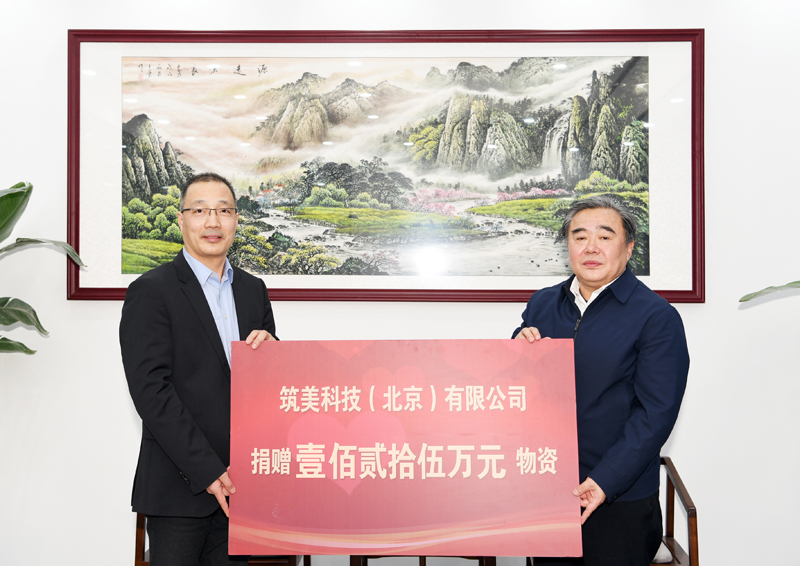 张军向学校捐赠了价值125万元的物资,姚庆国代表学校接受捐赠,并回赠致谢牌。