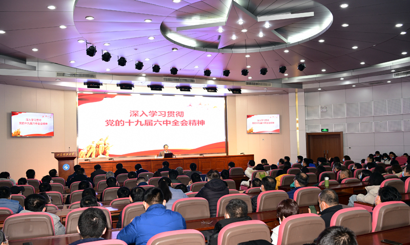 12月14日,校党委书记罗公利为能源学院、经管学院教工党员代表、部分班级学生及党委学校办公室党支部全体党员宣讲党的十九届六中全会精神。