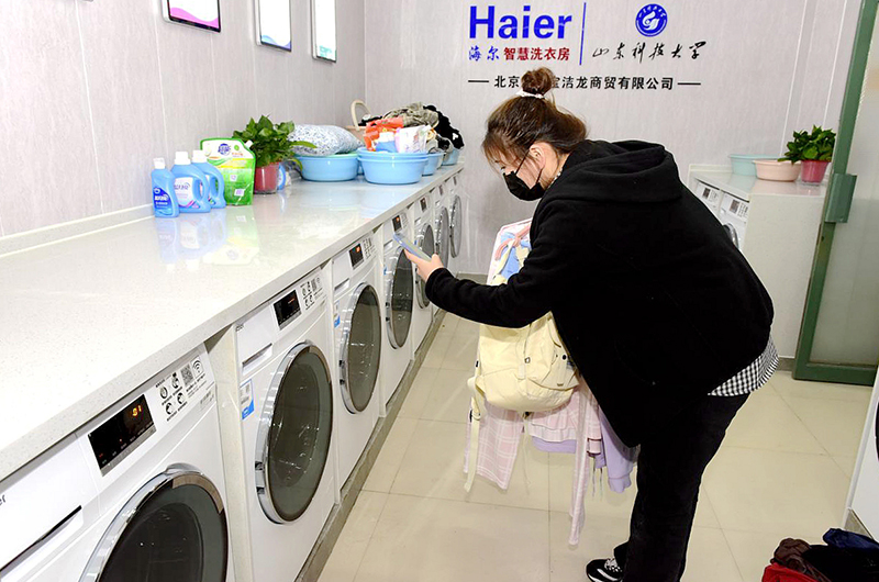 BB贝博艾弗森官网建“智慧洗衣房”,学生可扫码洗衣。(任波/摄)